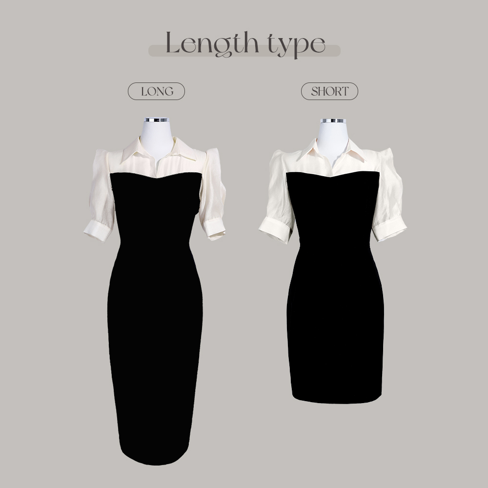 [Dali made/5천장돌파❤][기장선택가능]로에드 반팔 배색 셔츠 콤비 H라인 원피스(하객룩/빅사이즈)