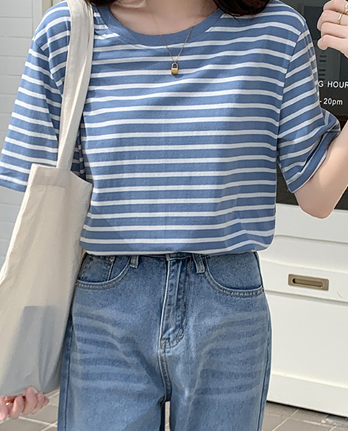 [누적5천장🔥]*탄탄한핏/부드러운 면소재* 여자 스트라이프 단가라 반팔 티셔츠 - 4color (여름이너/베이직/데일리룩/질좋은티셔츠/비침X/목늘어남X/흠뻑쇼)