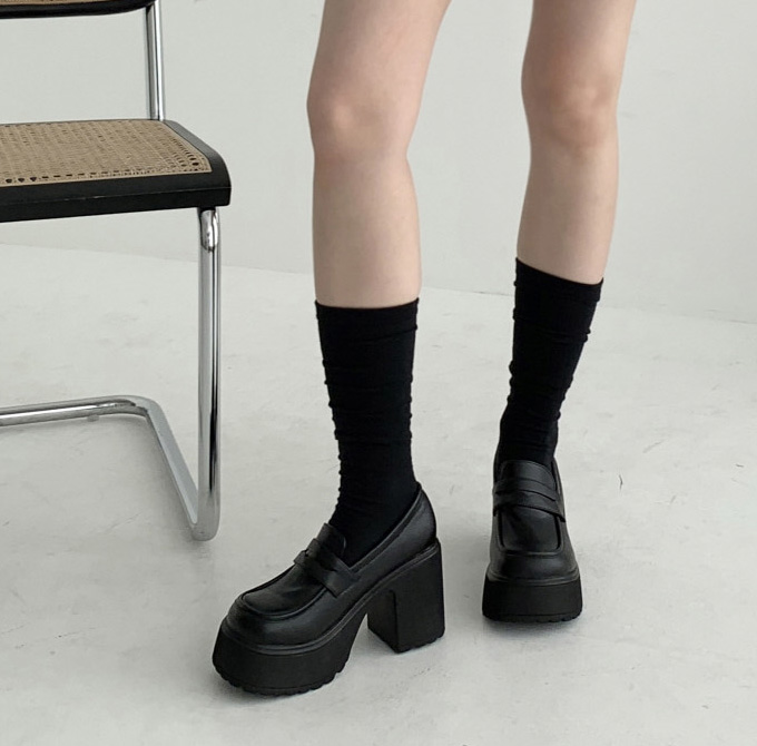 스퀘어 가보시 통굽 페니 로퍼힐 유광 무광 9cm●