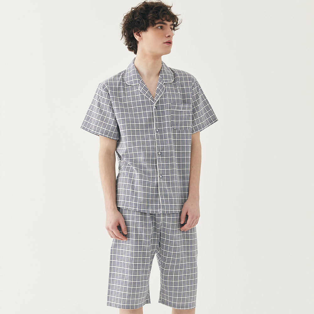 남성잠옷 여름파자마 체크무늬 반팔 남자 시원한 홈웨어세트