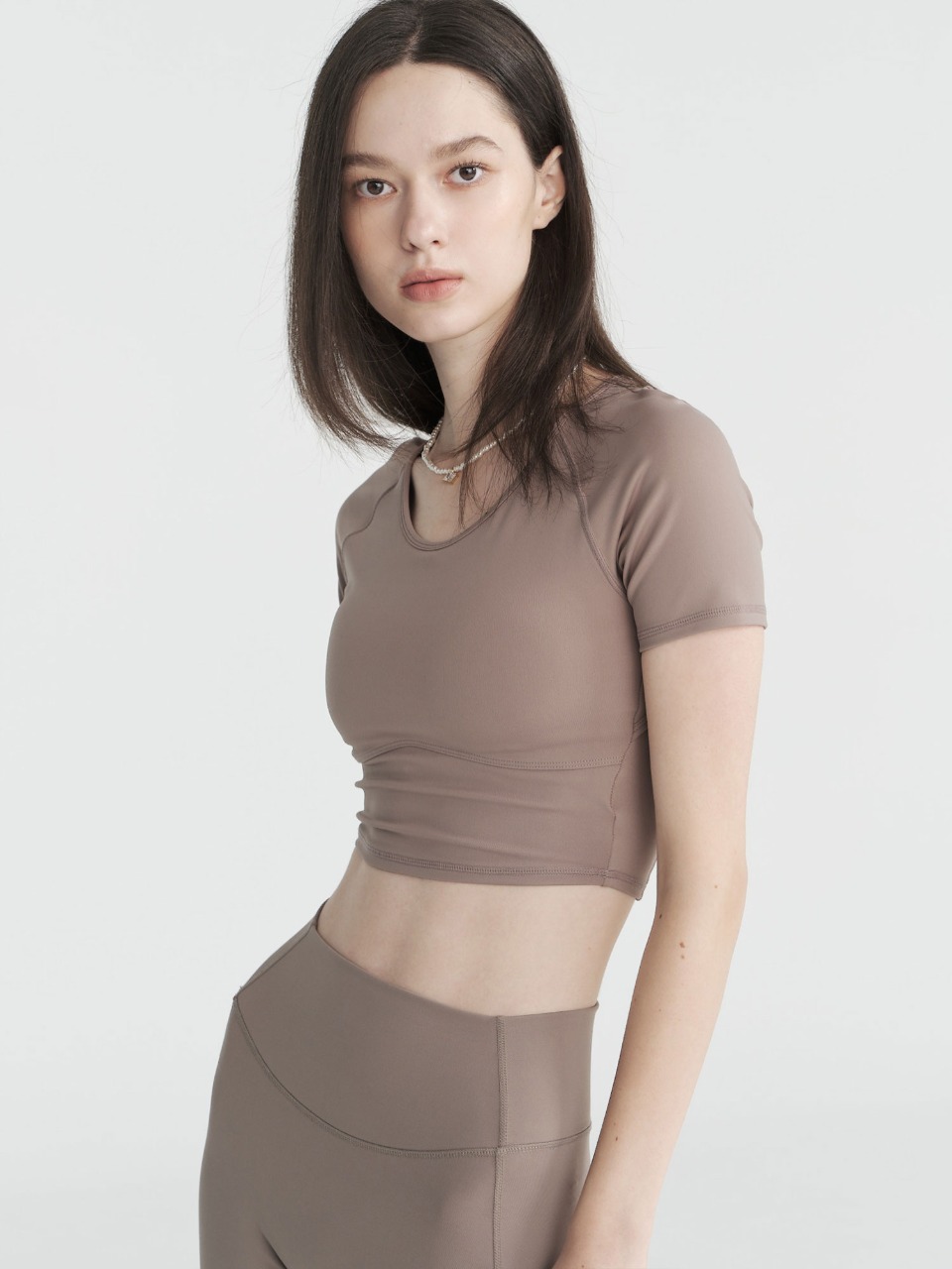 소노 숏 슬리브 크롭탑 - 브라운