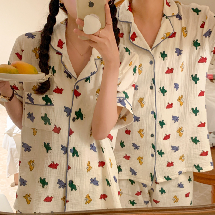 유후 순면 요루면 여름 곰돌이 커플잠옷 신혼부부 반팔 잠옷