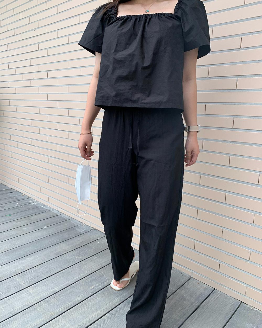 플리pt 나일론 바스락 밴딩 일자핏 여름 시원 하이웨스트 고무줄 꾸안꾸 팬츠 2color