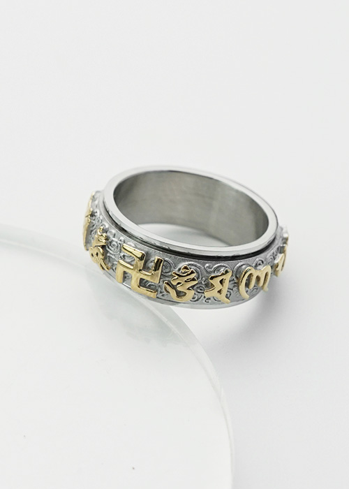 써지컬스틸 골드 폰트 만트라 옴마니반메훔 롤링 불교 반지 R-0068