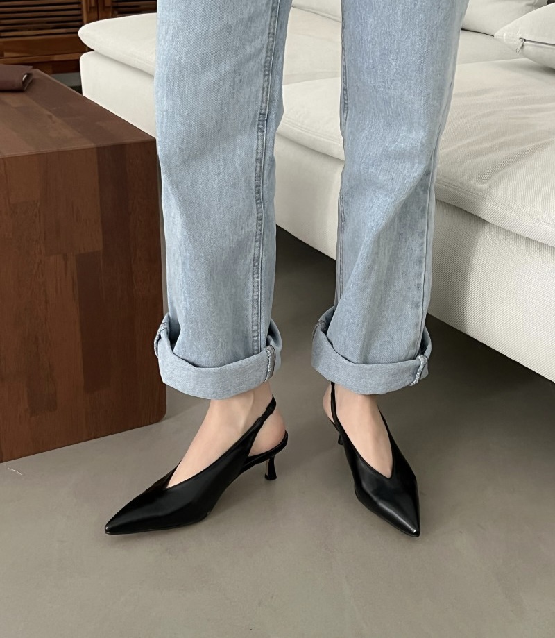 [유니스] 아니스트 스틸레토 뾰족 브이컷 여자 여성 발이편한 하객신발 하객구두 상견례신발 셀프웨딩슈즈 미들힐 슬링백 샌들 힐(5cm)