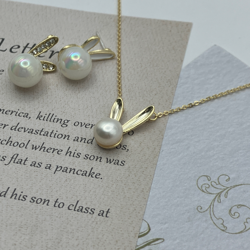 [SET] 골드 레빗 진주 목걸이 귀걸이 세트 귀여운 데일리 토끼 주얼리