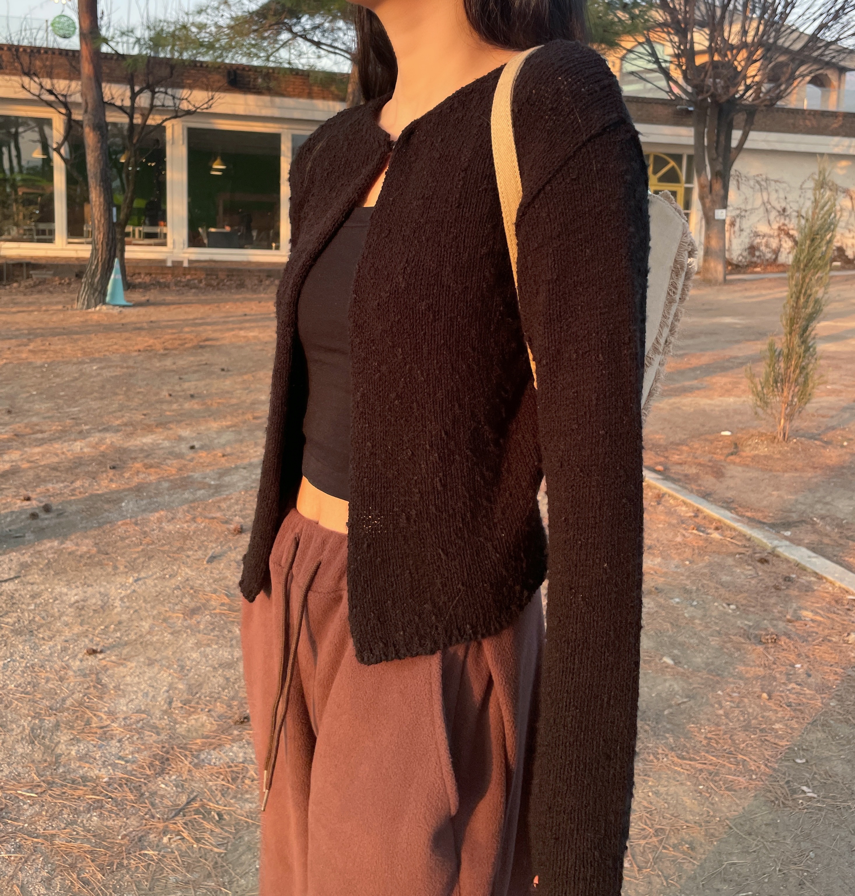 [마지막수량/당일발송] 부클 후크 가디건 (5 color) 여자 봄 여름 부드러운 루즈 박시 도톰 볼레로 블랙 핑크 뜨개 니트