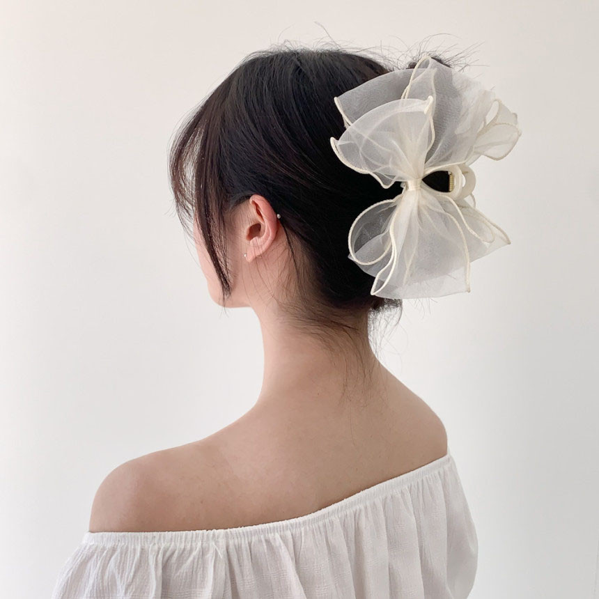 빅시스루 리본 반묶음 올림머리 쉬폰 헤어 집게핀 2color