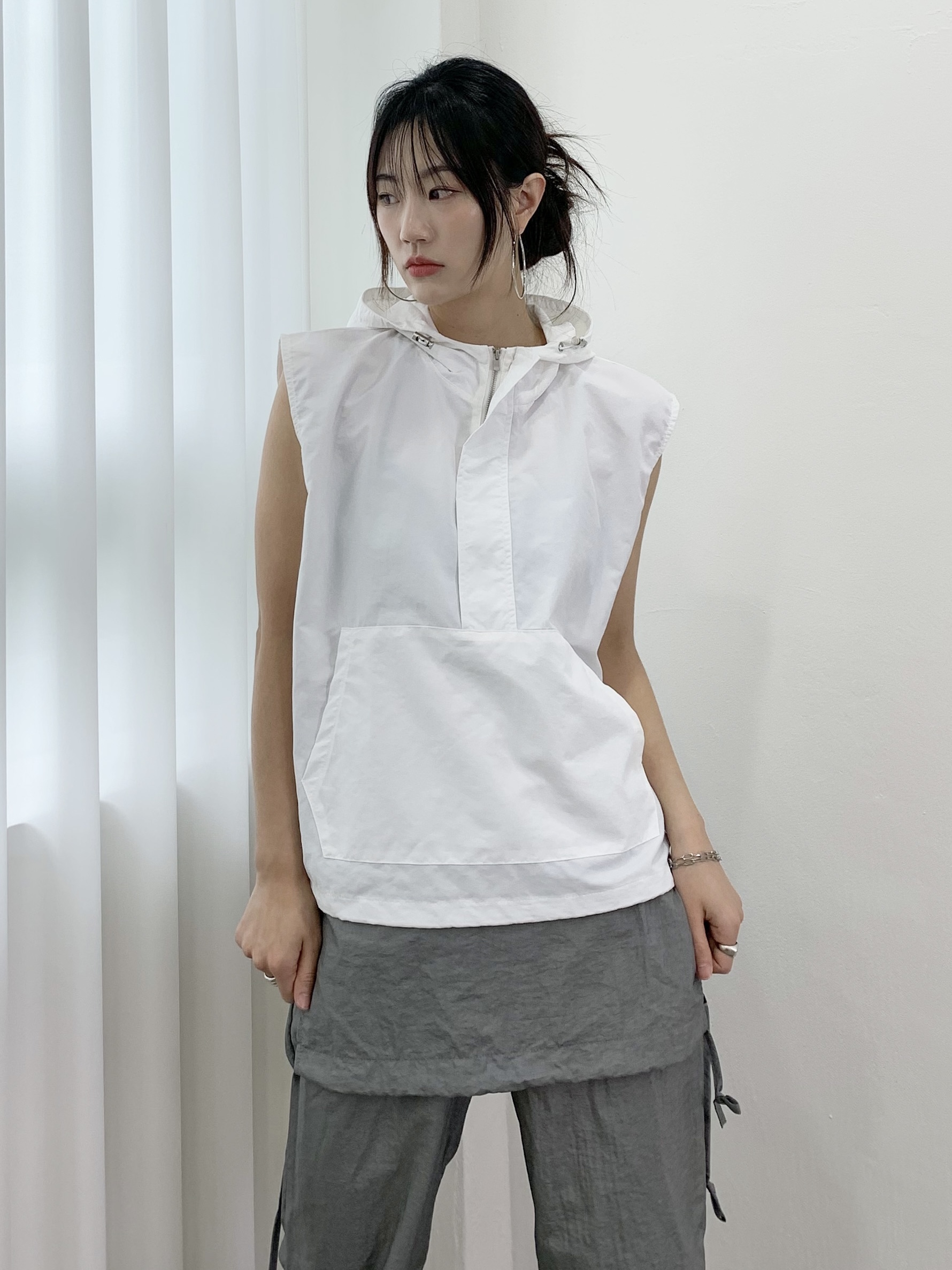 [당일발송화이트]아노락조끼 반집업바람막이 고프코어 2colors 골프 바람막이 후드조끼 윈드브레이크 나일론