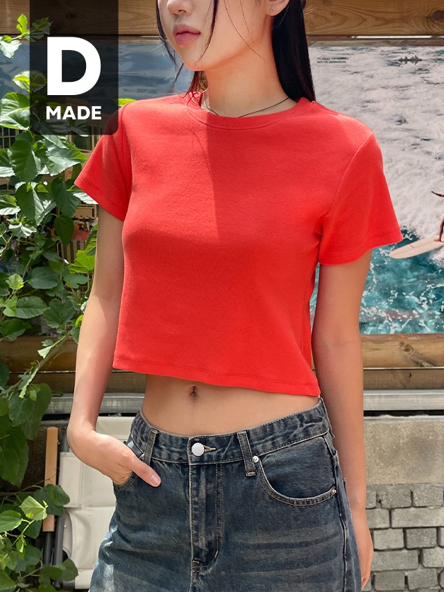 [1만장돌파][MADE] 빅사이즈 44-100 라인드 컬러 골지 크롭 반팔티