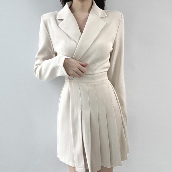 [3color] 찬찬 5월 결혼식 하객룩 상견례옷차림 밴딩 플리츠 주름 정장 미니 점프수트 원피스 결혼식 하객룩 면접룩