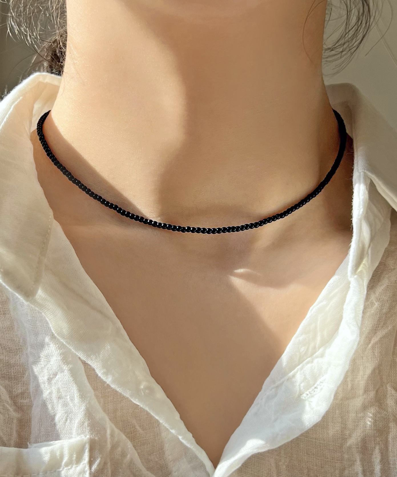 [무배] 실버925 블랙 라운드 비즈 볼 레이어드 초커 목걸이