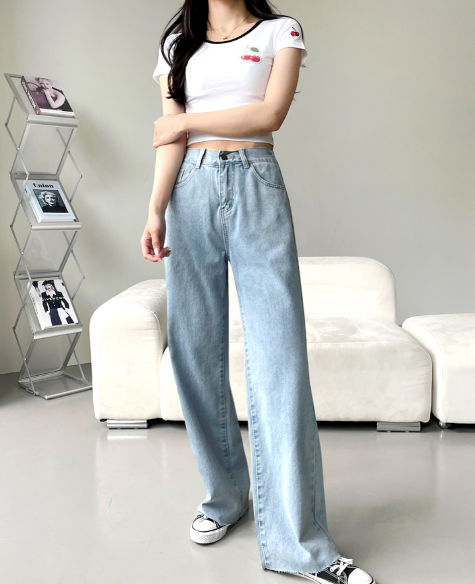 신축성 좋은 캐주얼 와이드 데님 청팬츠