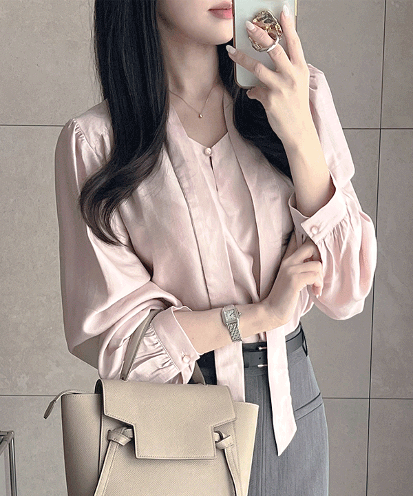 [투웨이]피아 실키 타이 블라우스bl (4color)