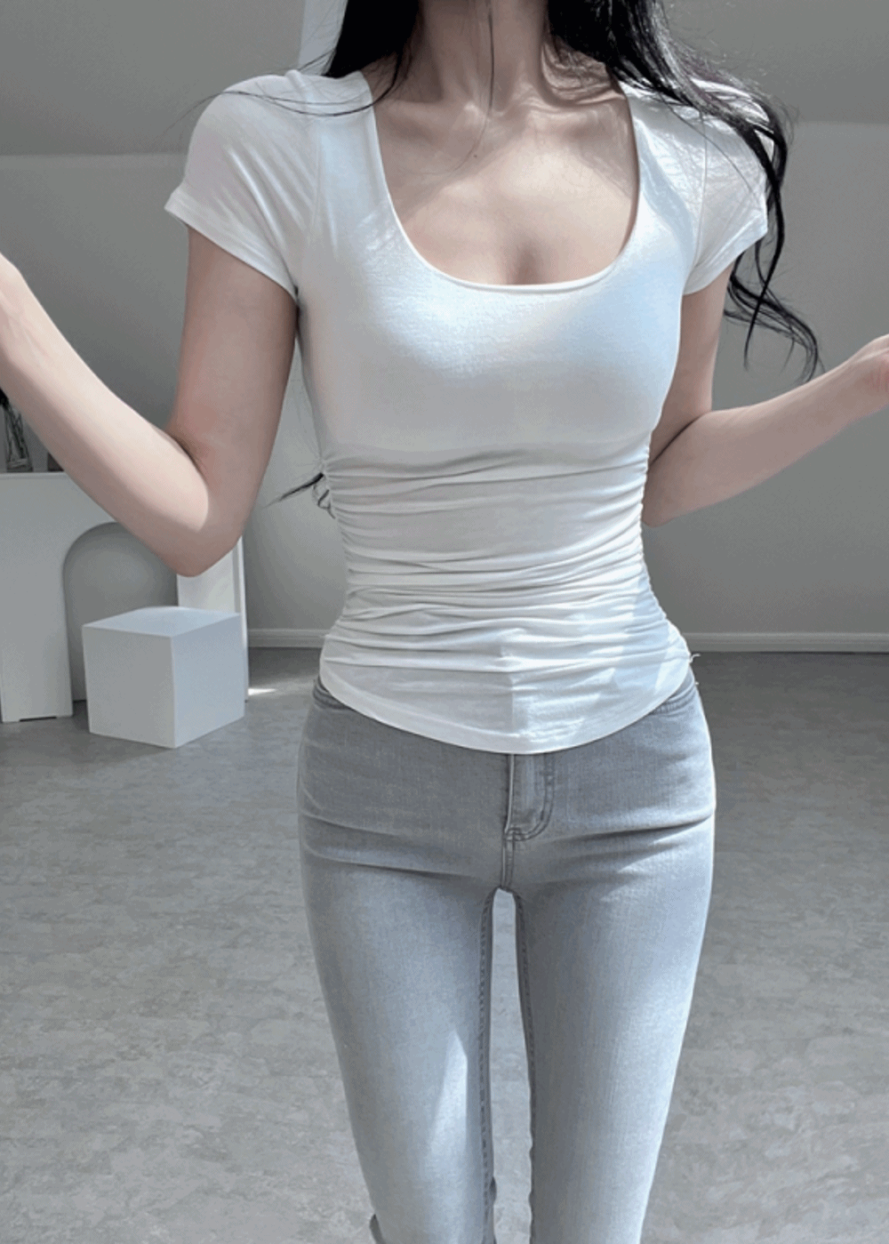[딱붙는/허리셔링] 군살보정스퀘어넥 반팔티 4컬러