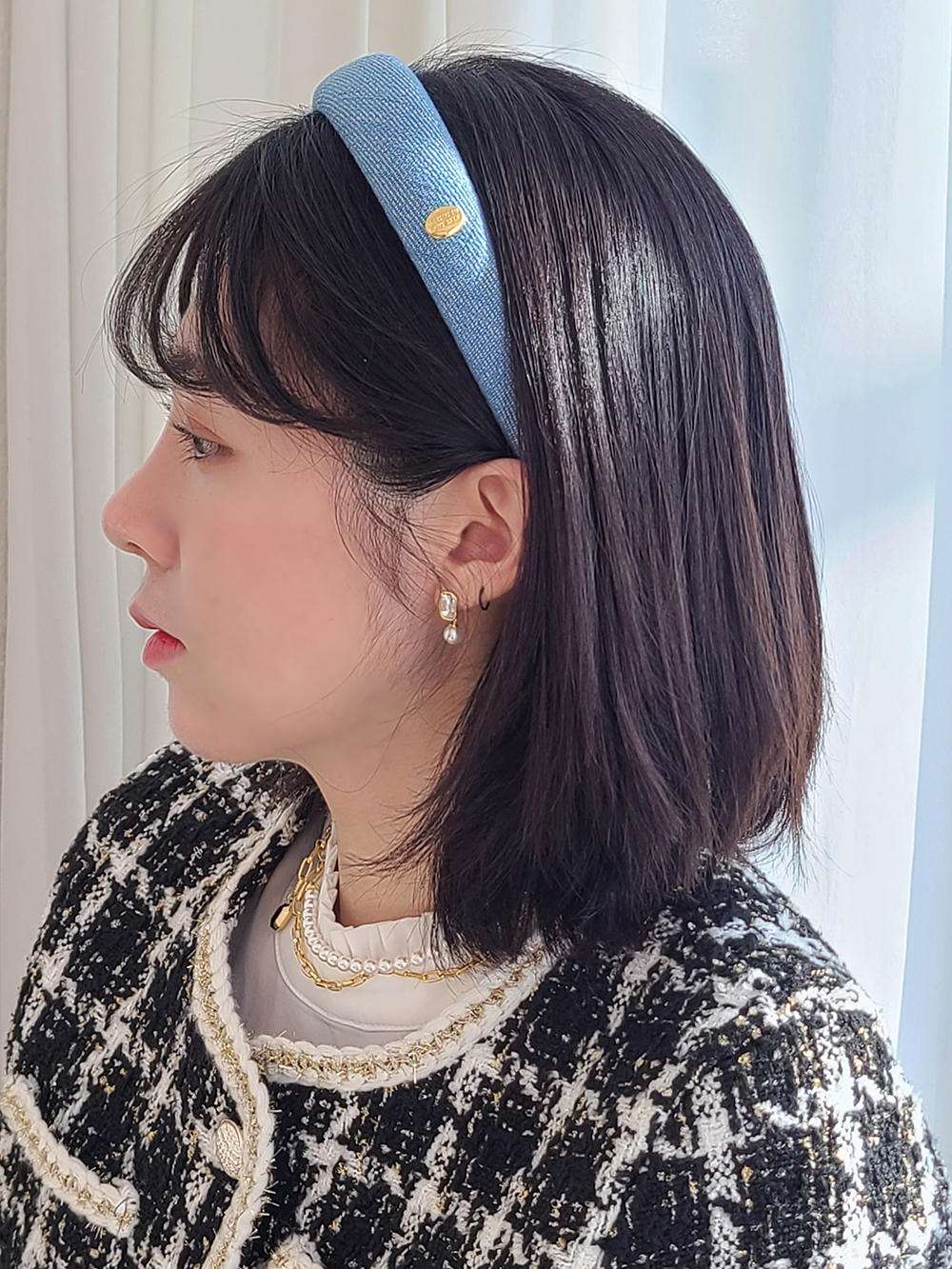 [블링살롱 made/국내제작] 마룬 위시 로고 데님 볼륨 쿠션 헤어밴드 머리띠 3컬러
