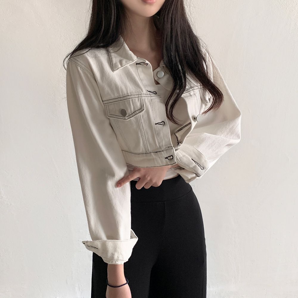 [간절기템/실물예뻐] 크롭 스탠다드 아이보리 자켓 스티치 화이트 데님자켓