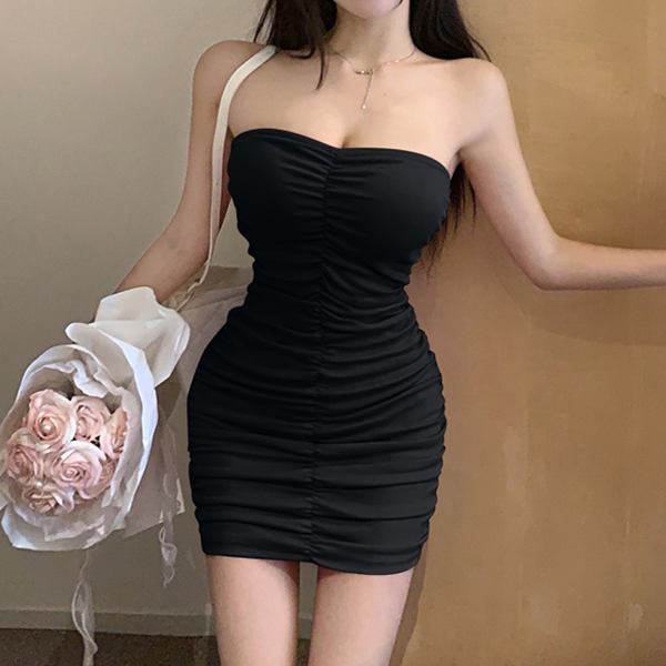 튜브탑 셔링 슬림 미니원피스 2A24037