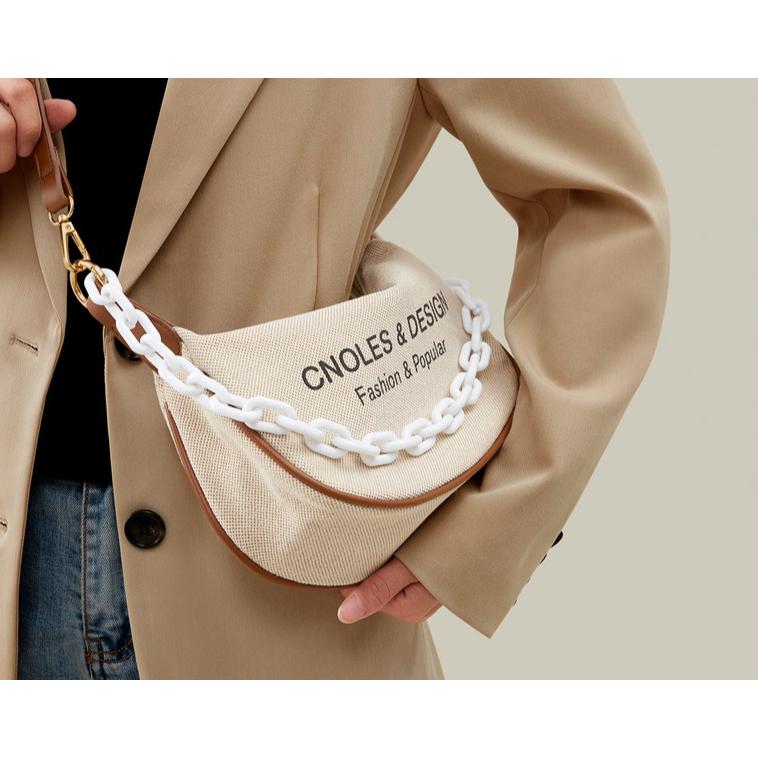 명품크로스백 2023 신상 프랑스 Cnoles 데일리 명품가방 캐주얼한 빅체인 리넨 린넨 크로스백