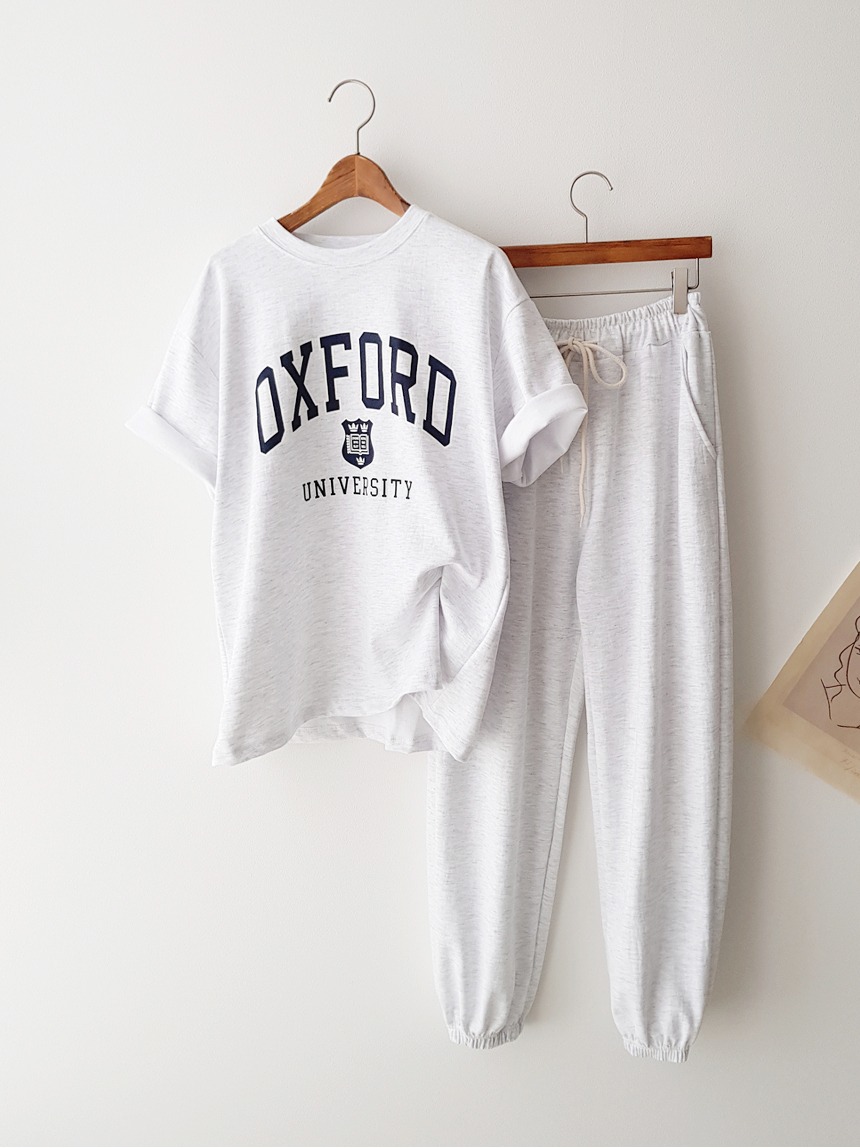 원마일룩SET/ 심플 레터링 포인트 루즈핏 반팔 티셔츠 밴딩 조거팬츠 트레이닝바지 투피스 여름 데일리 트레이닝복 운동복 체육복 추리닝 세트