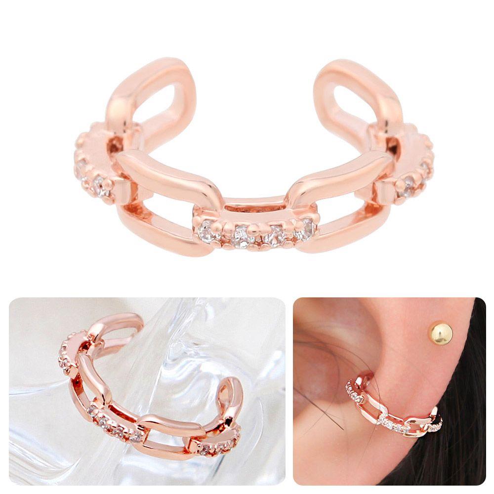 여자 14K 큐빅 체인 로즈골드 링 귀찌 이어커프