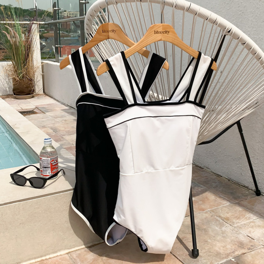 [모노키니+스커트SET] 스퀘어넥 스커트 포함 라인 투웨이 모노키니 비키니 수영복 2color