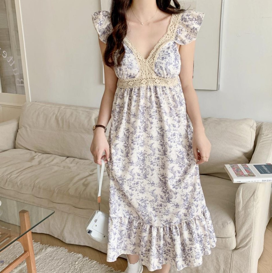 (당일발송) 플라워 프릴 여름 나시 원피스 잠옷 파자마 트왈 노브라 캡내장 레이스 공주 잠옷 홈웨어 세트