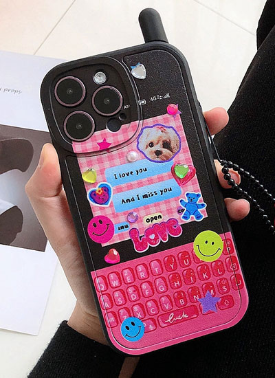 말티즈 핑크 체크 레트로폰 안테나케이스