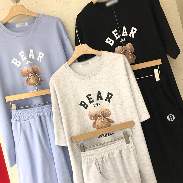 [3컬러] 테디베어반팔반바지세트 SET 상하의세트 반팔세트 반바지세트 데일리 곰돌이반팔티 거꾸로 중고등학생 체육복 여성츄리닝세트 여자츄리닝세트 학생츄리닝 여름반팔반바지세트 MZ