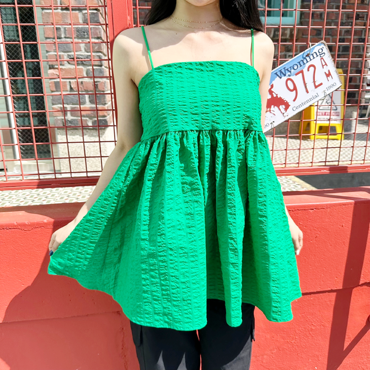 휴가룩 나시 뷔스티에 슬라브리스 스모크 미니 블록 훌 a라인 블라우스