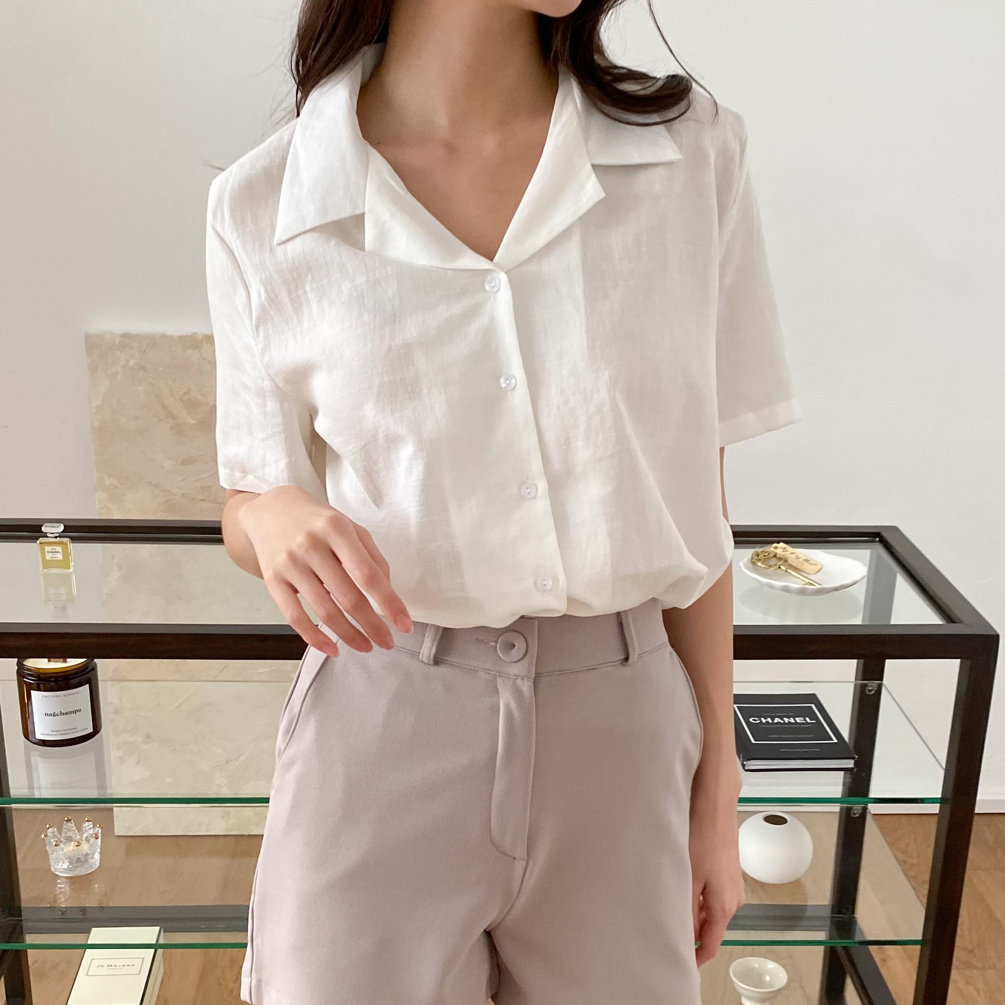 린넨 오픈카라 반팔셔츠 화이트 핑크 하늘색 셔츠 블라우스 남방
