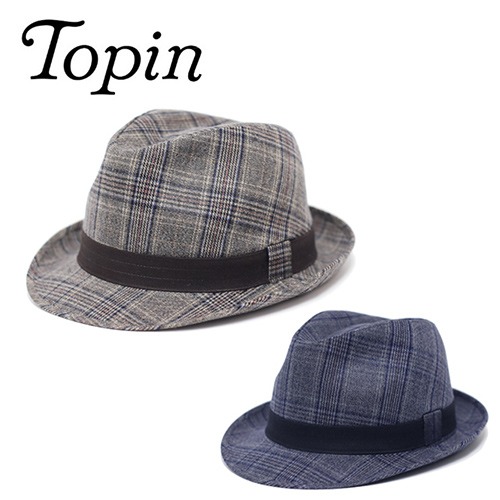 TOPIN 3106 위브 체크 정장모 토핀모자 페도라 중절모 간절기 중년남성 할아버지모자 빅사이즈모자 56/58/60cm