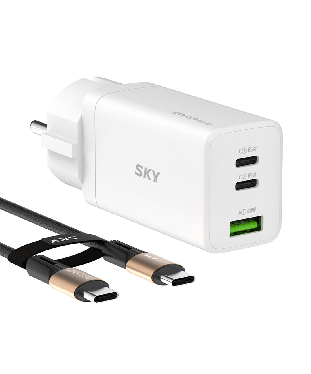 ⭐케이블 세트⭐스카이 필 접지 GaN 65W PD PPS 3포트 멀티 초고속 충전기+CtoC 케이블 USB C타입 아이폰 갤럭시 탭 아이패드 맥북 고속 충전기