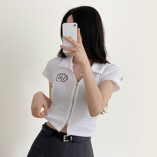 [1+1 할인] 쿠야 기본핏 세미 크롭 자수 레터링 카라 반팔 집업 (4color) [여름자켓/쫀쫀/셔츠반팔/여름신상/캠퍼스룩/휴가]