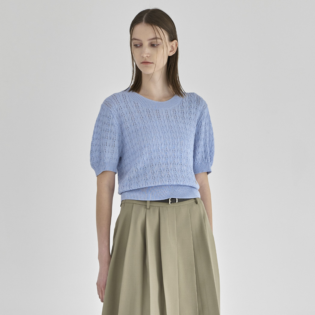 (T-6676)블루밍 벌룬 슬리브 케이블 니트