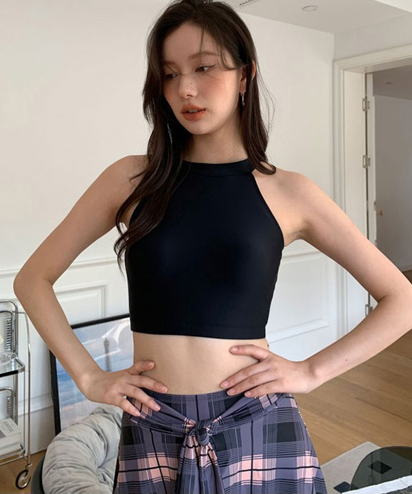 하체커버 탱크탑 스커트수영복세트 (블랙)