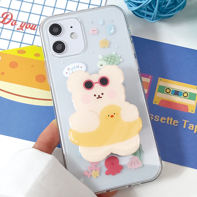 여름 곰돌이 폰거치대 투명젤리 폰케이스 귀여운 젤리케이스 썸머 폰케이스 에폭시 스마트톡 베어