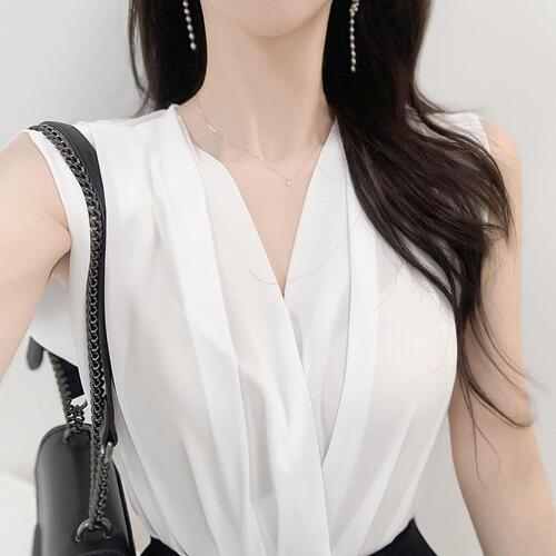 [여름 면접 정장] 바네사2 브이넥 핀턱 셔링 랩 나시블라우스/4color