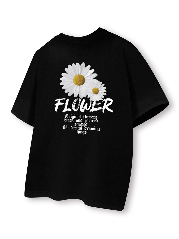 고딕 플라워 프린팅 라운드 반팔 티셔츠 남자 여자 커플 시밀러룩 빅사이즈 세미 오버핏