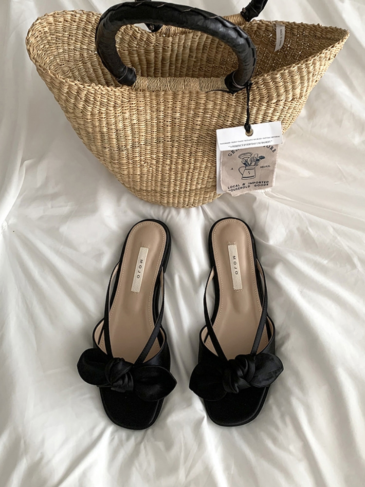 [800족 돌파] 히메 새틴 실크 리본 뮬 슬리퍼 1.5cm