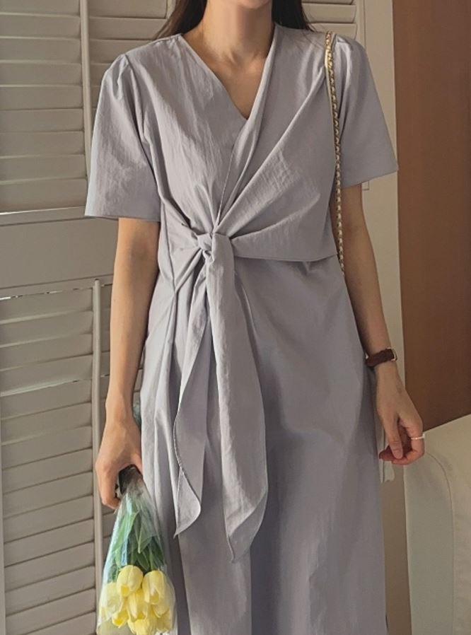 끈묶는 원피스 매듭핑크 사이드매듭베이지색 하늘색롱원피스