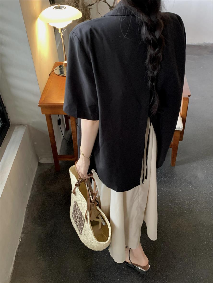 카라넥 루즈핏 반팔 자켓 포켓 투버튼 얇은 뒷트임 백트임 스트랩 블랙 정장자켓 베이직 여름 시원한 오피스룩 데일리룩