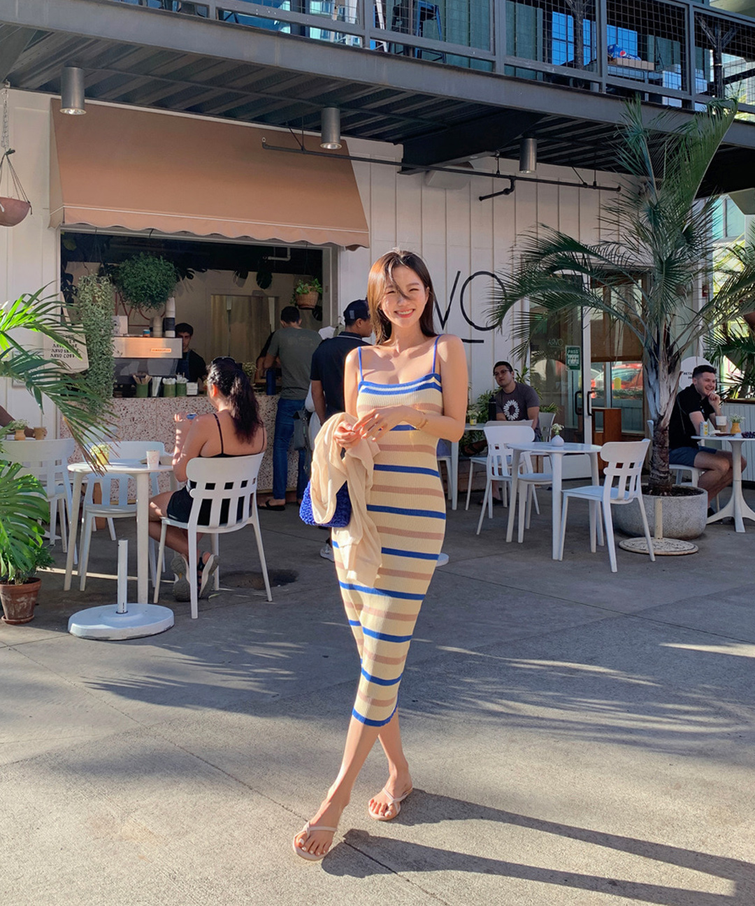 [당일발송/MADE] 엘카 스트라이프 니트 원피스 Z