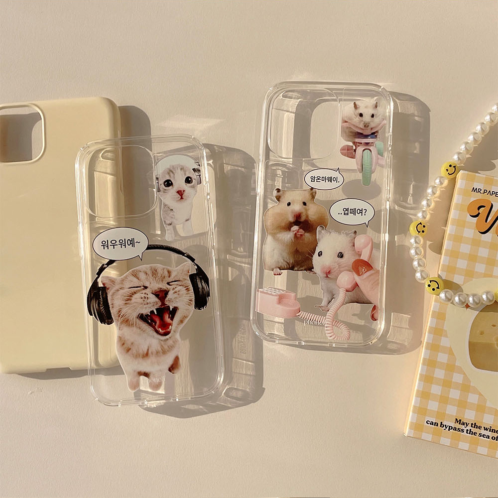 말풍선 헤드셋 고양이 햄스터 스티커 아이폰/갤럭시 젤하드 투명 케이스