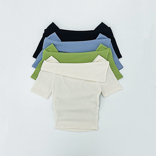 [데일리/여리핏] 언발 오프숄더로 여성스러움 up, 부담 없이 착용될 오프숄더 반팔 티셔츠]지젤오프숄더티