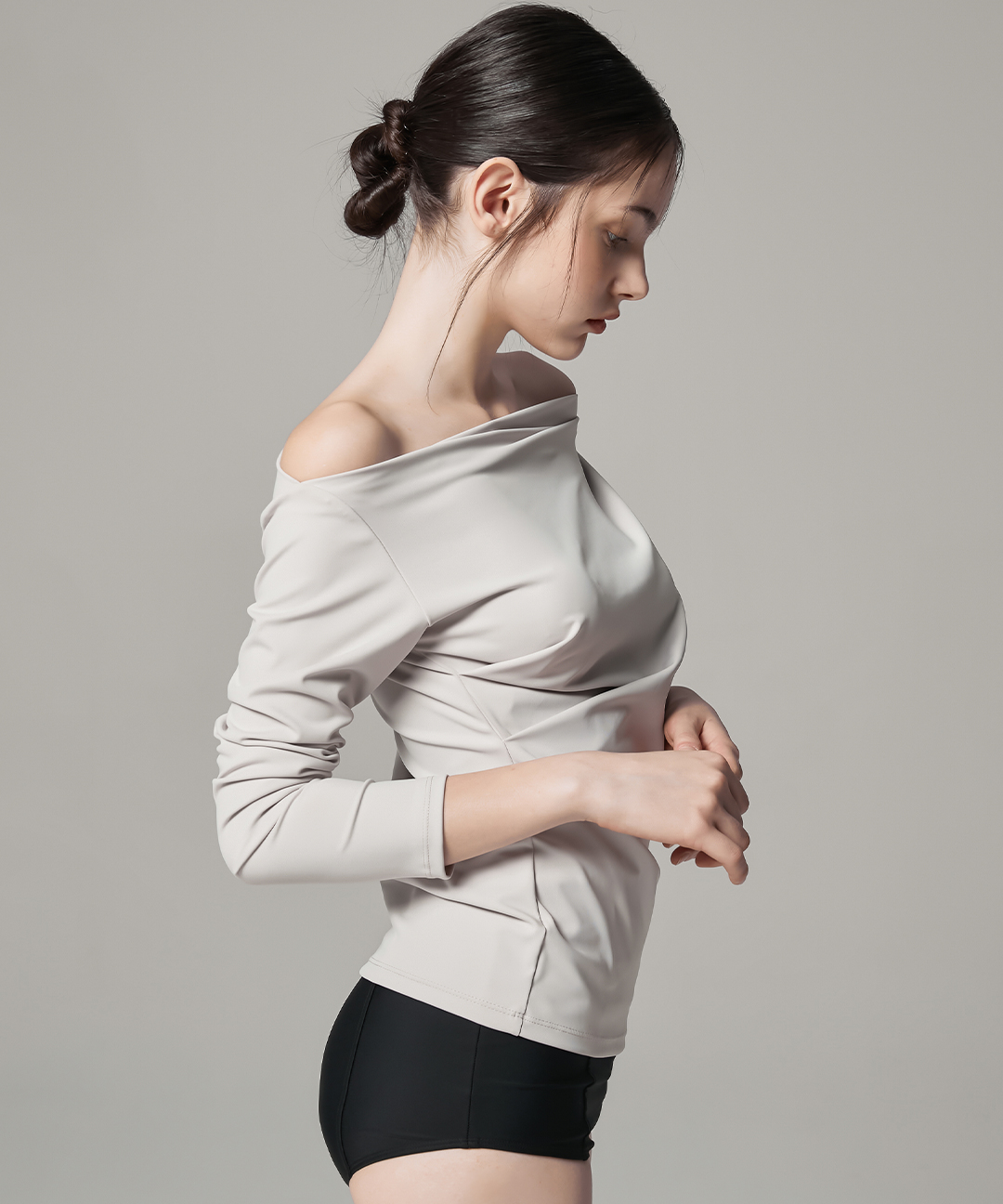 샬롯 드레이프 보트넥 래쉬가드 - Cream [수영복/체형커버]