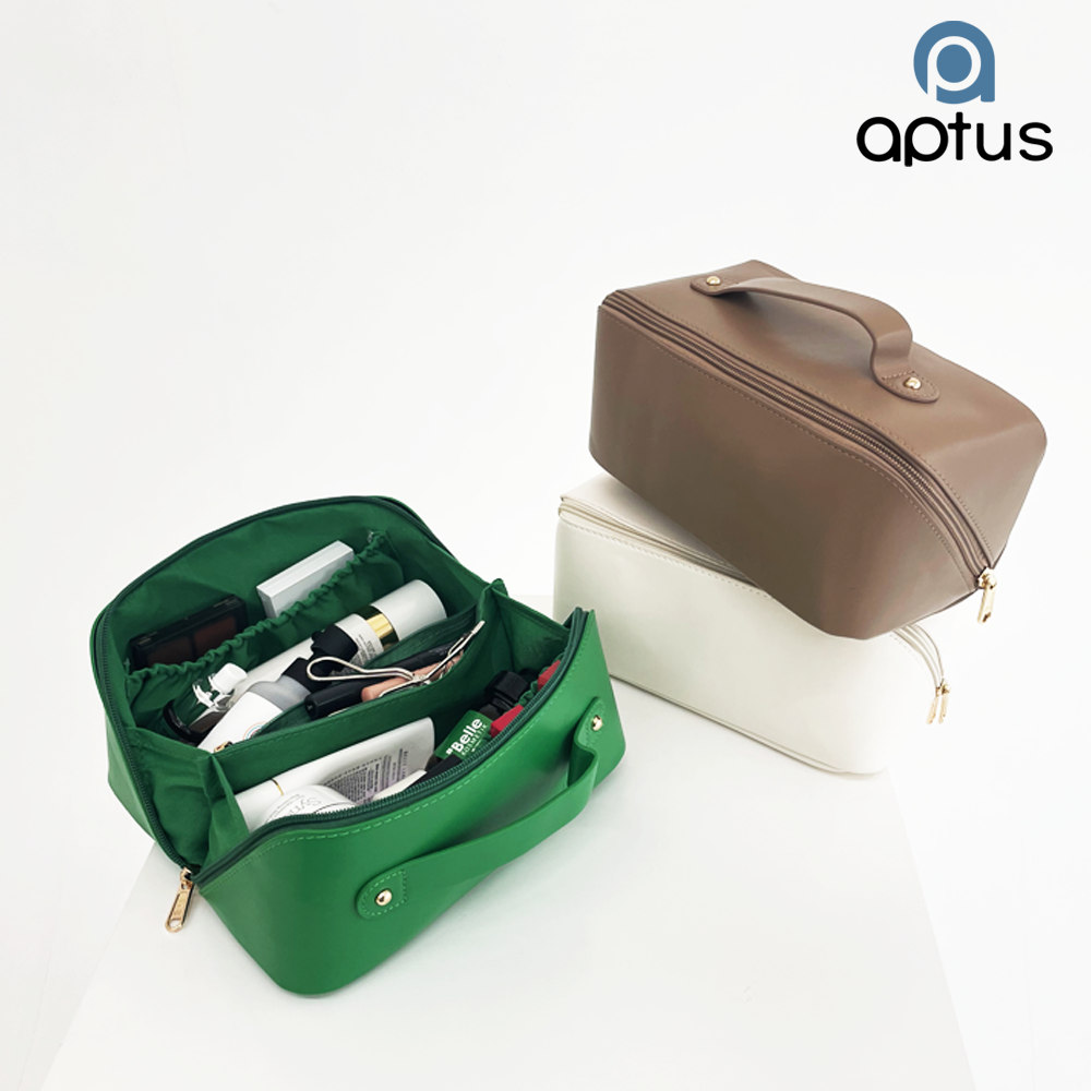 압투스 화장품파우치 메이크업파우치 고급 가죽 여행용 수납가방 메이크업박스 이너백 대형 멀티 손잡이