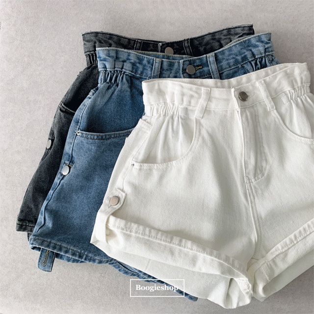 [투웨이/허리밴딩] 꾸안꾸! 롤업 하이웨스트 밴딩 데님 숏팬츠(3color!)