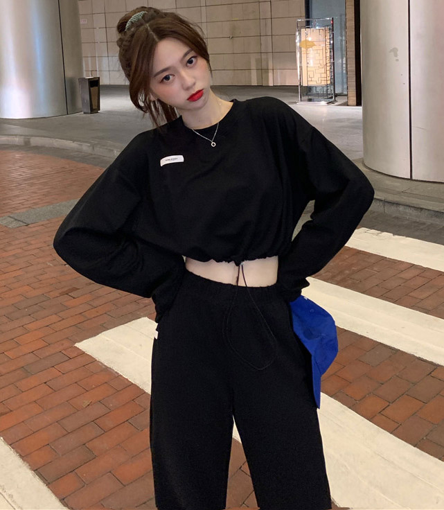 운동복 크롭 긴팔티/밴딩 조거 바지 코디세트