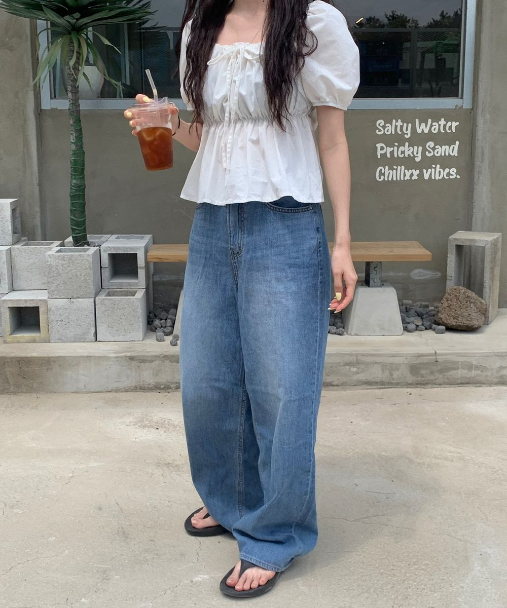 솔티 와이드 데님 팬츠 - 쿨 여름바지 루즈핏 청바지 중청 하이웨스트 데일리